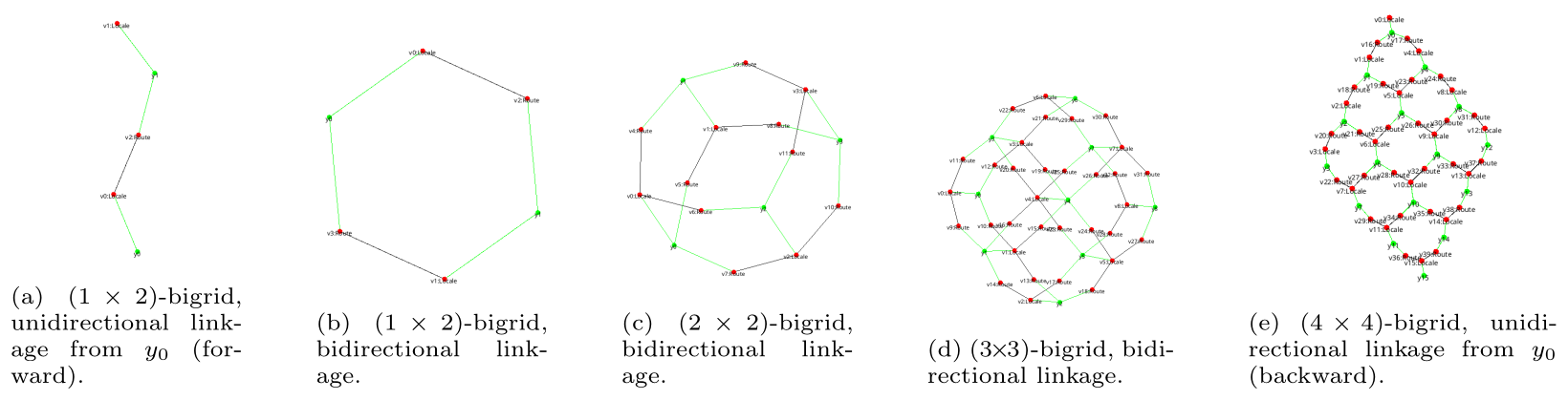 The following figures illustrate exemplary topological structures built from this “syntax of space” (which are formalized using our bigraphical axioms):